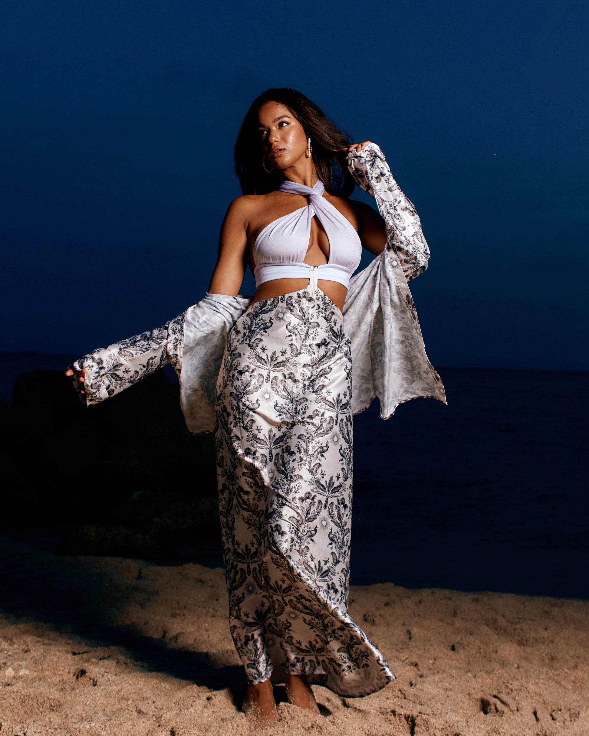 Introducing our newest patent-pending Attachable Maxi Skirt to Dress. This ultra multi-way skirt features a hook mechanism to match back and transform any top into a cohesive dress look. Wear your favorite bikini to a black tie gala, or match this skirt back to our multiway blouses and bandeaus and watch your dress options multiply!